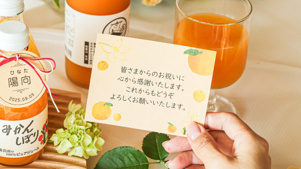 出産内祝いで利用しました。無添加のジュースは小さなお子さんがいるご家庭にも安心して贈れるので、とても喜んでもらえました。『美味しくてすぐになくなったよ!』と連絡があり、こちらも嬉しい気持ちになりました。